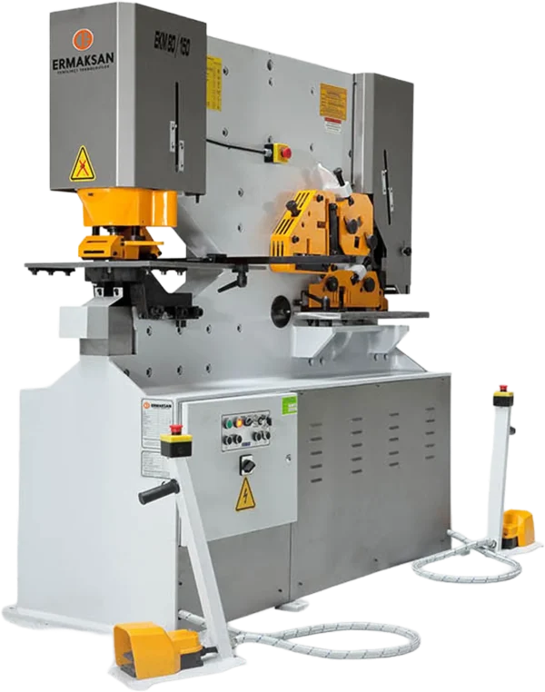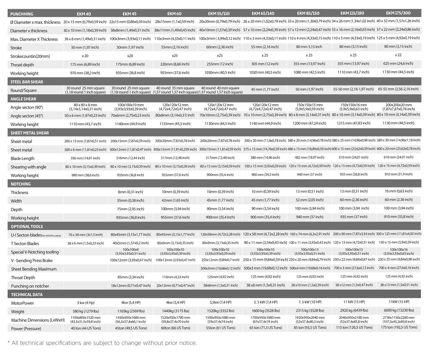 Las cizallas combinadas mejoradas de la serie EKM están diseñadas en CAD 3D y fabricadas en máquinas CNC de precisión con componentes de alta calidad. Estas máquinas versátiles integran múltiples estaciones, entre las que se incluyen: